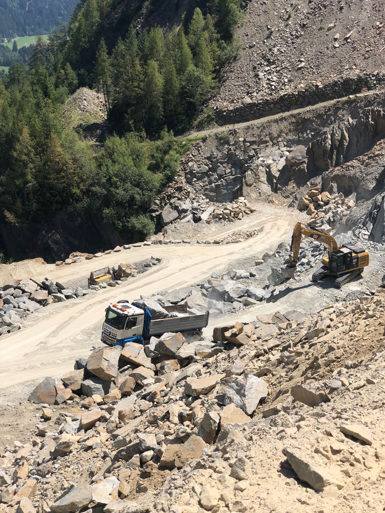 Mit der Übernahme des Steinbruchs Michlbach durch die Gebr. Dietrich GmbH im Jahr 2013 konnten wir eine Erweiterung unserer Angebotspalette sicherstellen. Seither zählt auch die Erzeugung und der Vertrieb von Bruchsteinen, Edelsplitt und Hartgestein zu unseren Kernkompetenzen. Mit modernster Aufbereitungstechnik produzieren wir an diesem Standort Hartsplitt für die Asphalterzeugung sowie Wintersplitt und Materialien für den Straßenbau wie Frostkoffer und Planiematerial. Daneben werden auch Mauersteine aller Größenklassen und Flussbausteine gewonnen.
